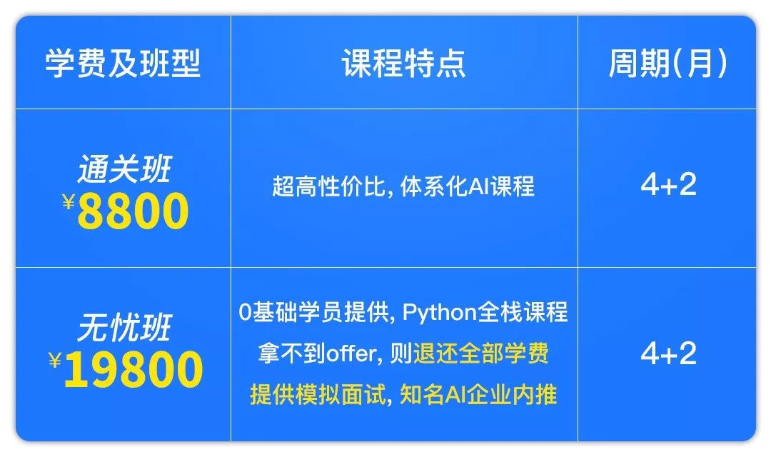 报名无忧班的同学,报名伊始即签订协议,承诺:拿不到AI岗 offer 或者初始就业税前薪资低于22w/年(本科不低于16w/年),则退还全部学费。