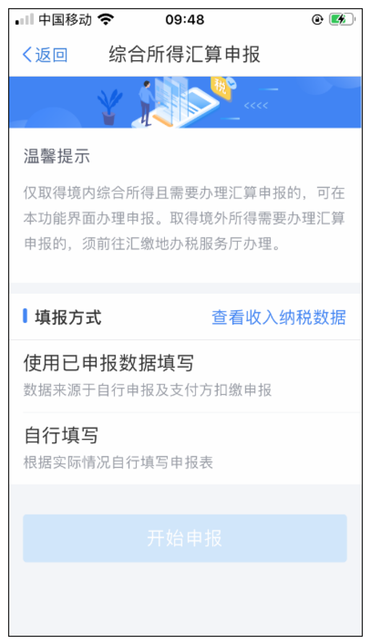 打开“个人所得税”App,进入“综合所得年度汇算”,然后选择填报方式。