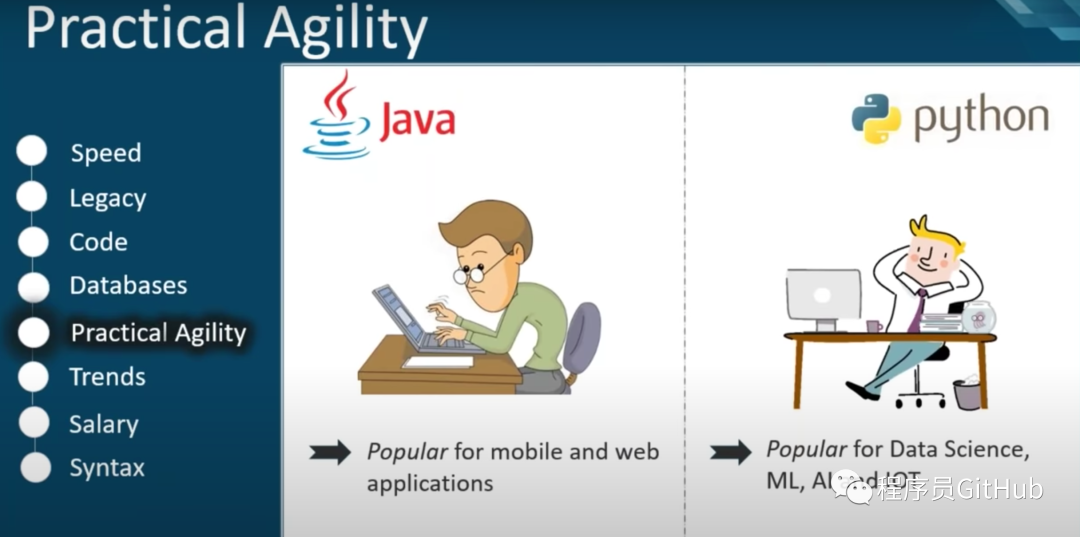 而Java和Python两门语言都是目前非常热门的语言,可谓北乔峰南慕容,二者不分上下,棋逢对手。但是对于初学者来说,非常困惑,因为时间和精力有限,上手必须要先学一门,到底选那个好呢,今天3分钟带你透彻了解: