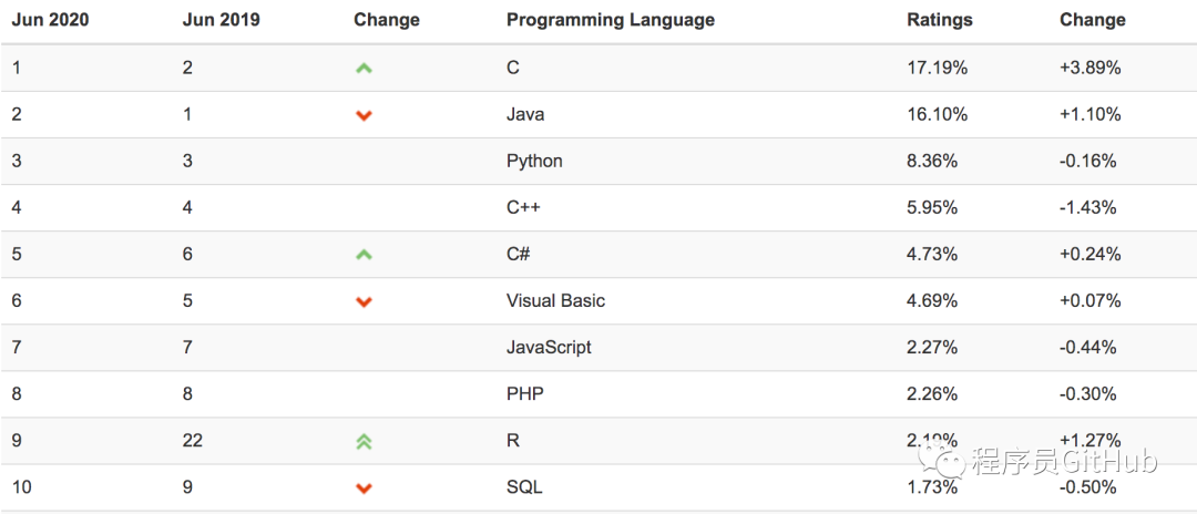 TIOBE 2020 年 6 月份的编程语言排行榜已经出来了。这个号称江湖兵器谱排行榜,每个月都会出炉一次,前十名几乎没有变化。C语言已经蝉联了2个月的第一,而Java和Python依然是老二和老三,市场热度常见不减。