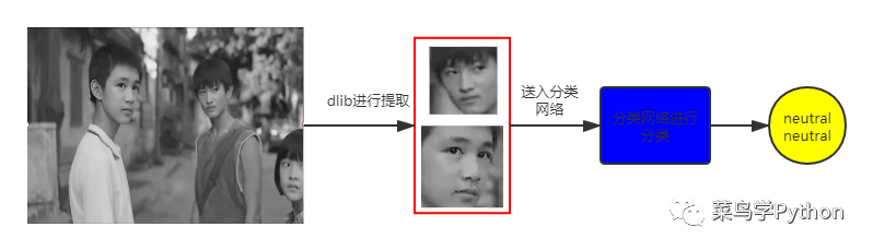 对人脸进行框定,是需要将人脸从图像中提取出来,然后送入到分类网络中进行表情的分类。对于人脸的框定和表情类别的判断,我们分为两个步骤: