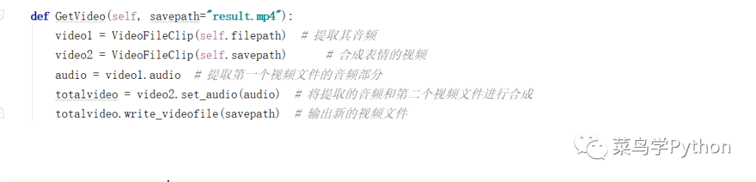 上述的程序中,我们利用moviepy来进行处理,首先是读取原视频的音频,然后将合成的视频和音频进行同步,最后写入到保存的视频文件中去。