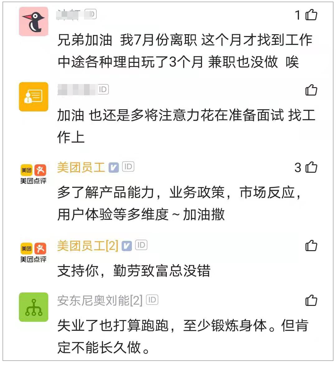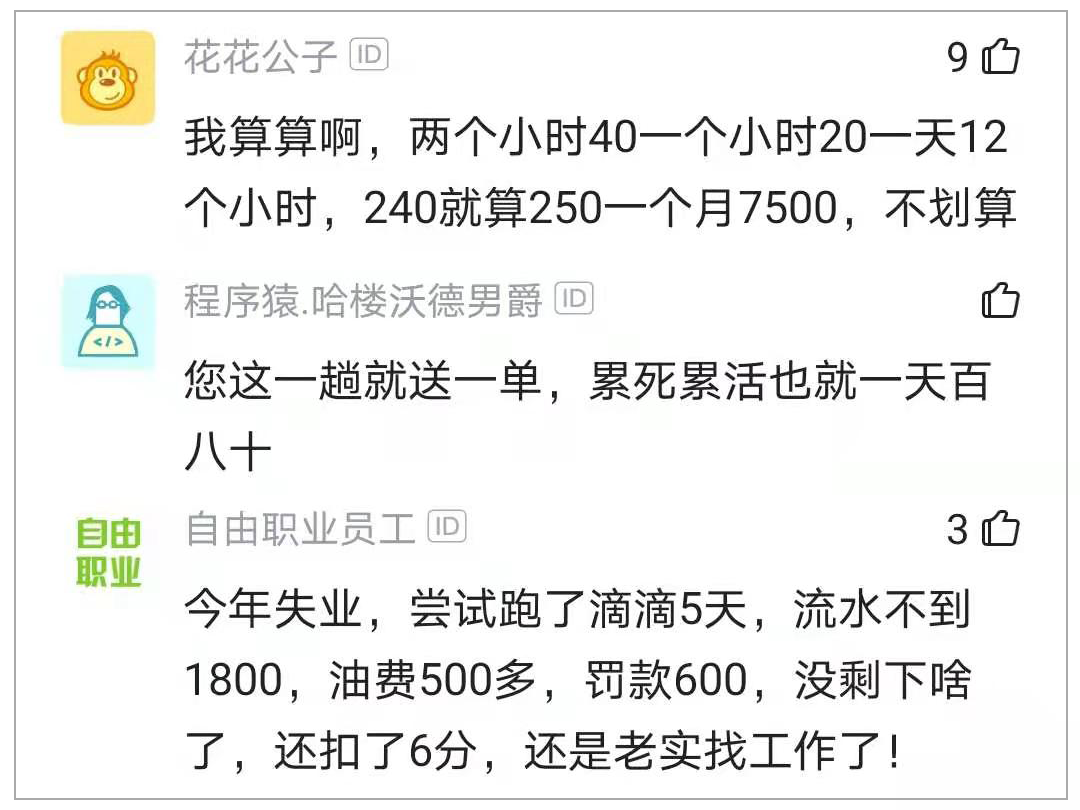楼主还劝大家“珍惜现在的工作,今年整个大环境不好再加上我技术比较菜,且行且珍惜,不要学我啊,希望大家都比我好!”,“还是得上班兄弟,这个太不容易了,我干11单都冻得不行。”