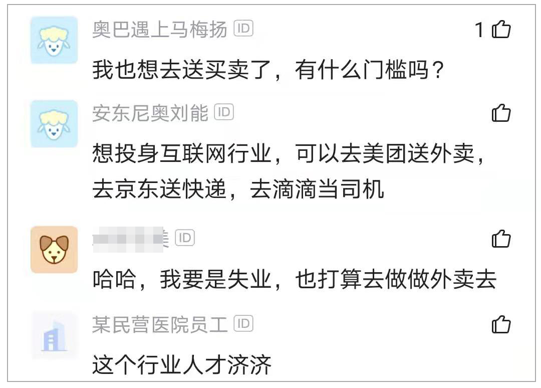 还有网友感慨自己也准备送外卖了:老铁,做这个众包不会留下社保记录,可以当兼职做是吧?我失业3个月了,积蓄已花光,准备找点兼职维持下生活