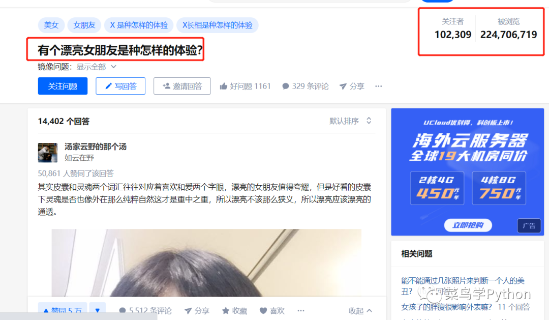 小编今天就带领大家去抓取并分析一下这个话题下的回答者的一些内容,感受一下拥有一个漂亮的女朋友是种怎样的体验。
