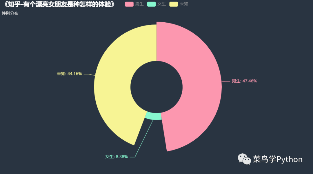 在对回答内容进行抓取的时候,小编发现在回答者性别的分布中,并不只是清一色的男生,通过可视化我们来更加直观的感受一下回答者的性别分布是如何的。