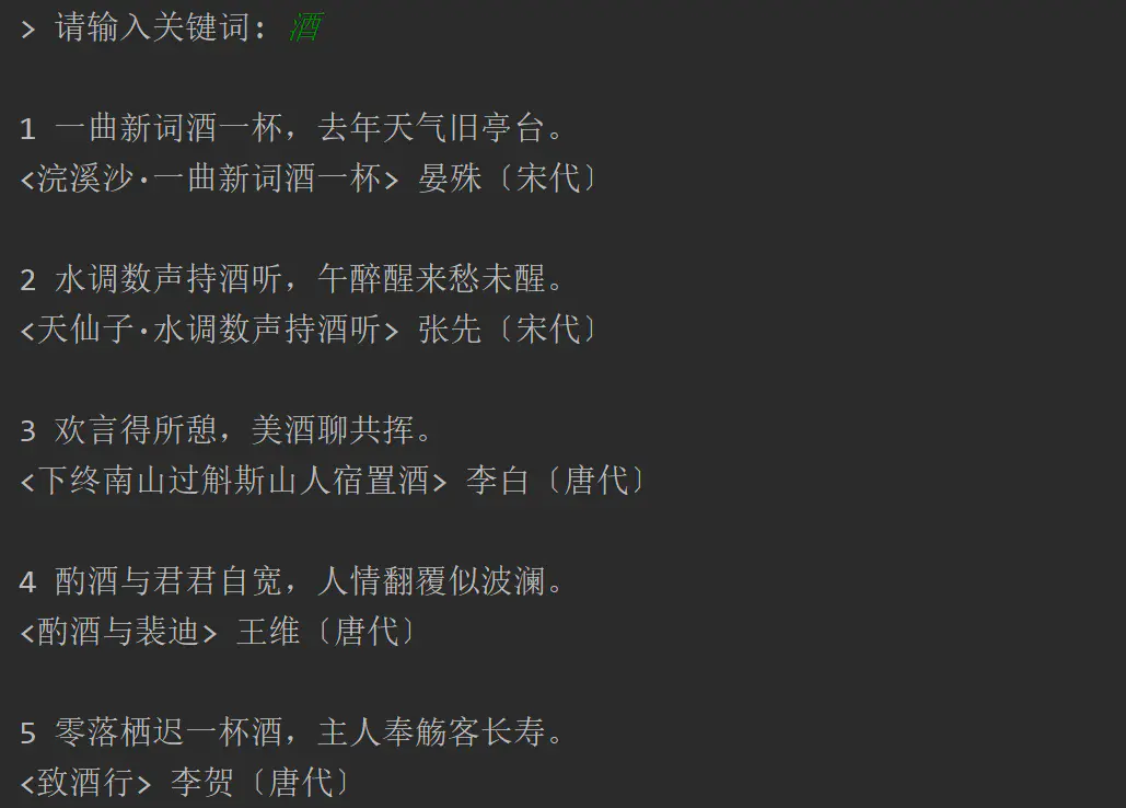 至此,我们就通过 Python 爬虫就成功制作了一款“飞花令”小工具,感兴趣的读者可以自己尝试一下!