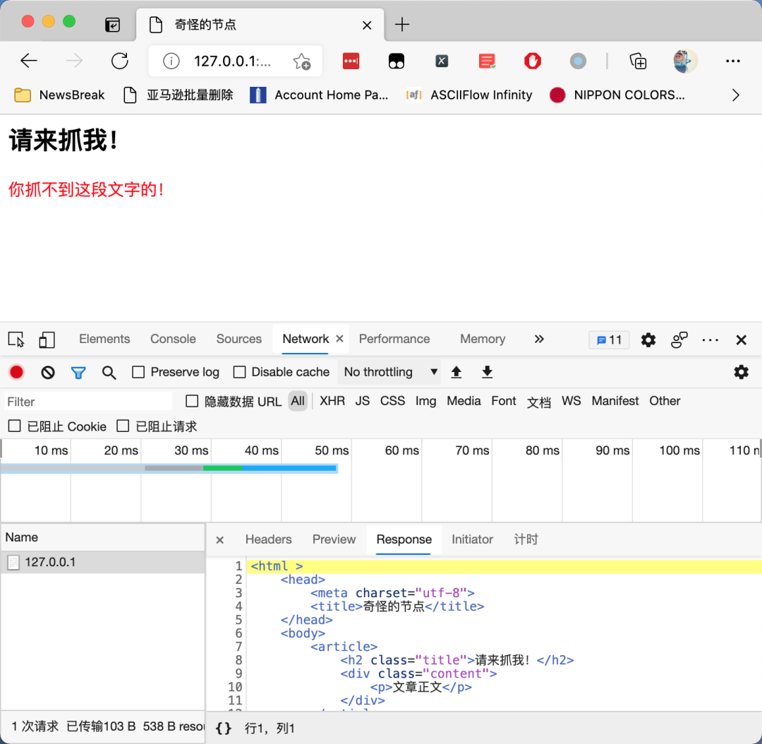 今天我们不讨论字体反爬虫和 CSS 反爬虫这两种情况。我们来看一段非常简单的网页。这个网页只有一个HTML 文件,不加载特殊字体,不加载 CSS 文件。