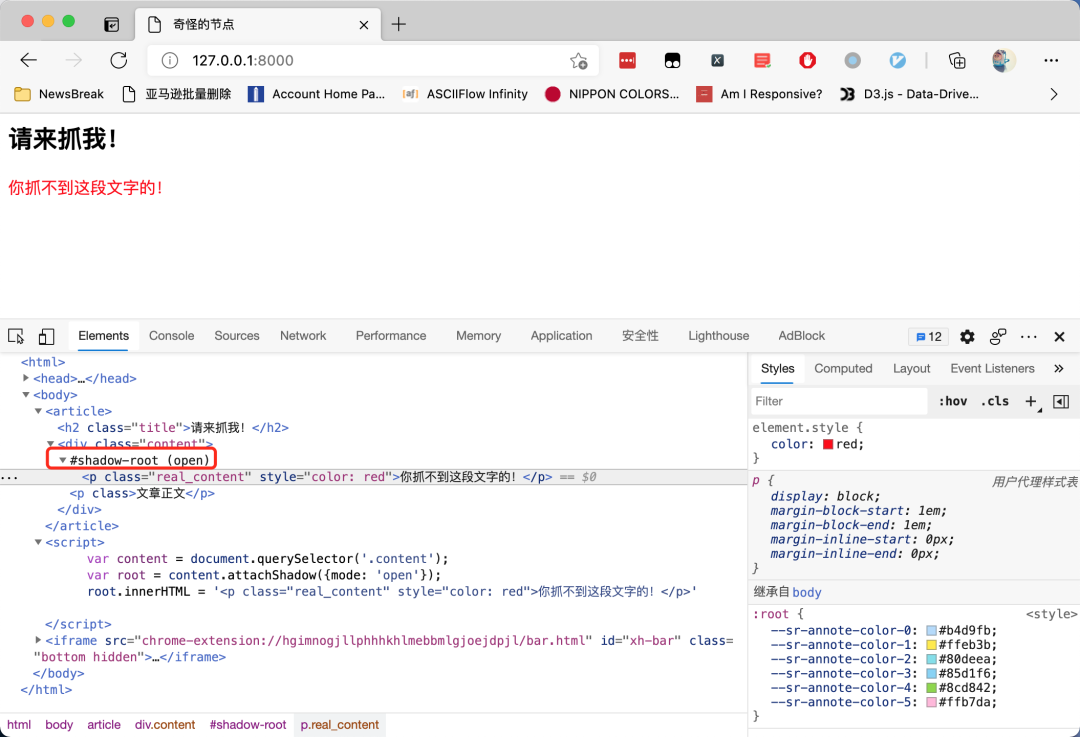 root.innerHTML = '<p class="real_content" style="color: red">你抓不到这段文字的!</p>'