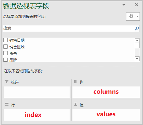 df1 = pd.pivot_table(df,index=["品牌","销售区域"],columns="月份",