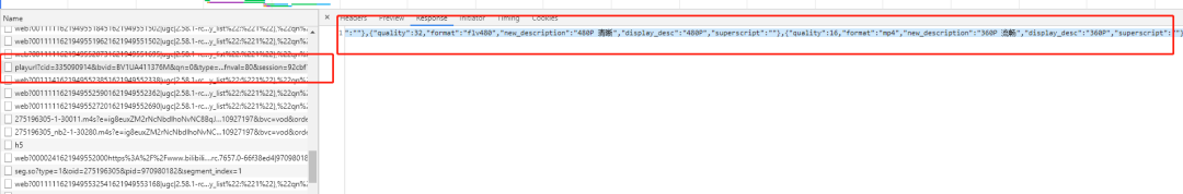 首先登录 B 站将 Cookie 中的 SESSDATA 复制到对象头中。用地址为 https://api.bilibili.com/x/player/pagelist?bvid= url 返回 cid。