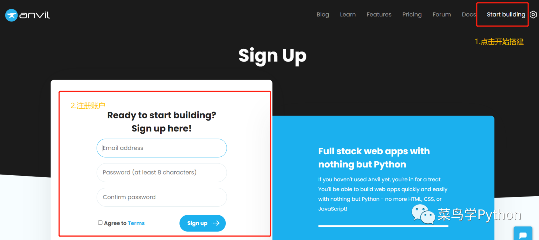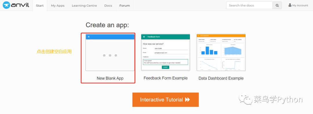 大家只需要前往Anvil的官网,创建账户,官网地址为:https://anvil.works/。