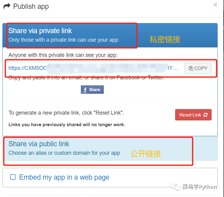 界面会弹出选项提示,提示用户是设置为私密链接或者是公开的链接。