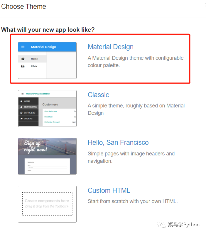 然后在弹出的主题选择窗口中选择Material Design主题。