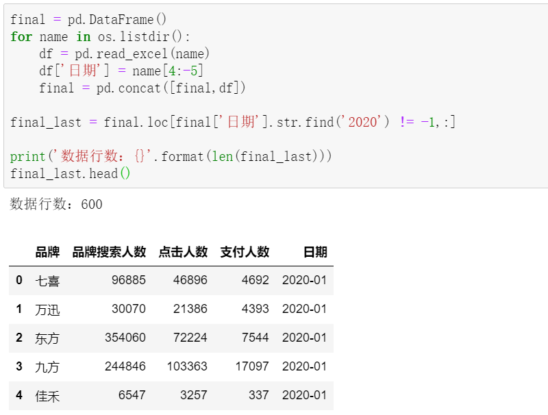 要对最近一年的数据做分析,我们先把2020年所有数据合并,拿到汇总表: