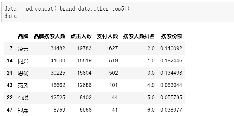 目前能够拿到的,只有品牌、搜索人数、点击人数和对应支付人数这几个指标。