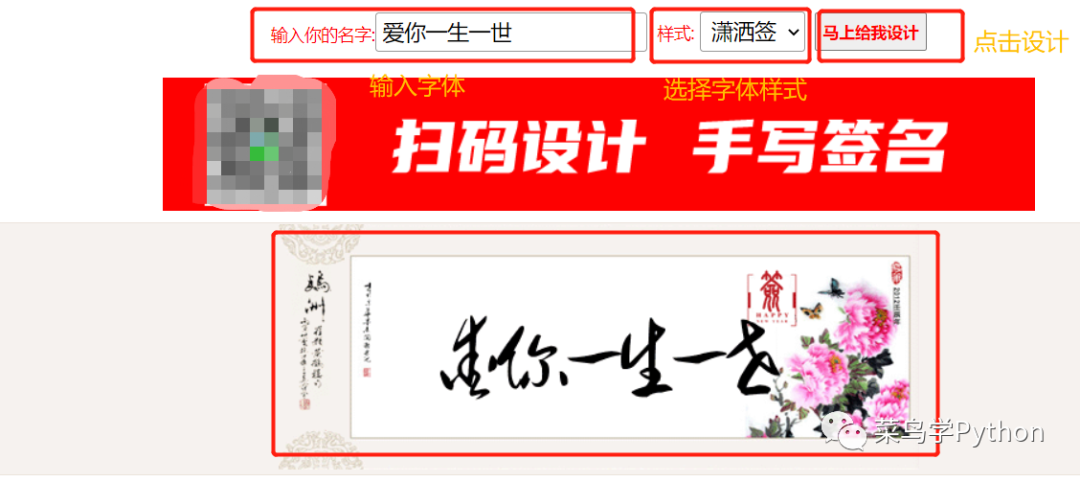 在进行字体的设计时,首先需要输入字体,然后选择字体的样式,最后点击字体设计后,就会在下方显示出设计的字体图片。