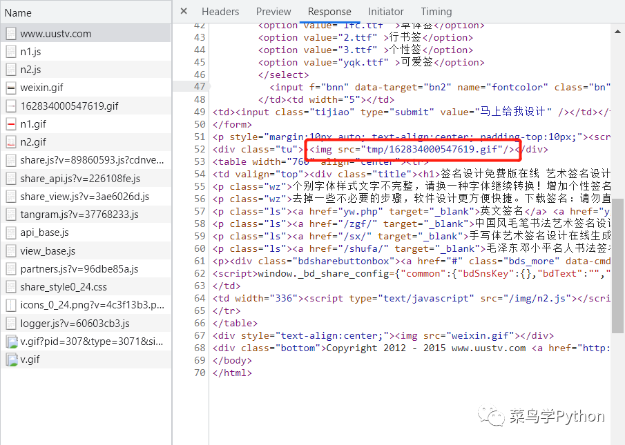 网页会返回html的网页数据,其中包含了字体设计后的图片地址,如下图所示: