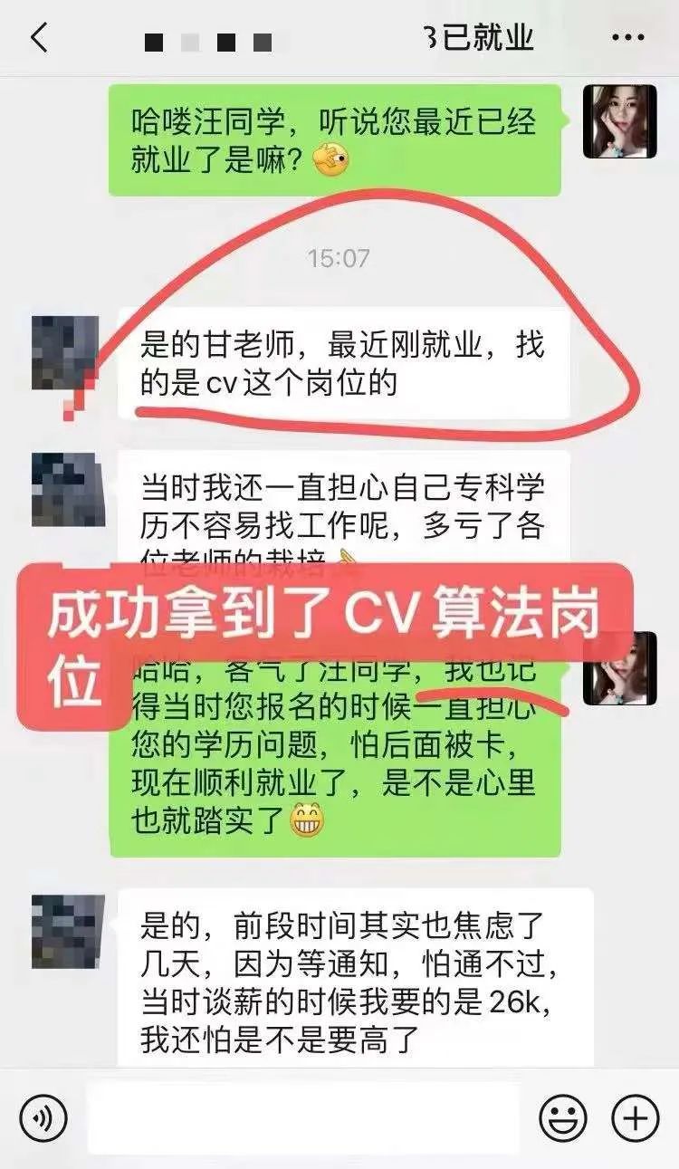 【4】汪童鞋,以大专学历为起点,从测试成功转型到CV算法啦!在就业老师指导下多次修改简历、面试,现在顺利拿到了26k*13 的cv算法offer,年薪达到33w➕,太厉害了。