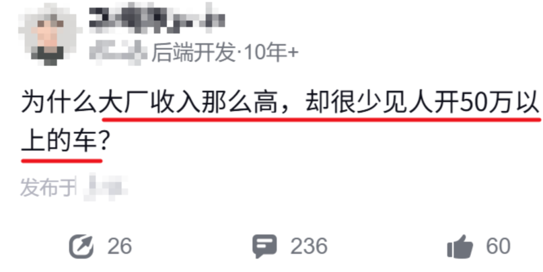 前几天在知乎上看到一个扎心的问题:"为什么大厂收入那么高,却很少见人开50万以上的车?"