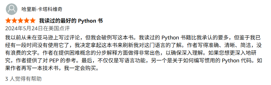 自问世以来,本书便在全球Python社区掀起一阵狂热追捧,美亚4.6高分。