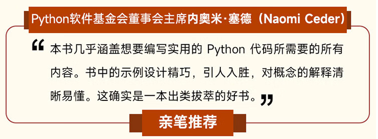 Python软件基金会董事会主席内奥米·塞德(Naomi Ceder)在序言中盛赞:“这本书中的示例设计精巧,引人入胜,对概念的解释清晰易懂。这确实是一本出类拔萃的好书。”