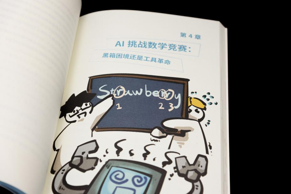 林亦团队结合他们实现的项目和AI梗,为每章都绘制了可爱的大彩图。比如“Strawberry有几个r?”这个著名的梗。