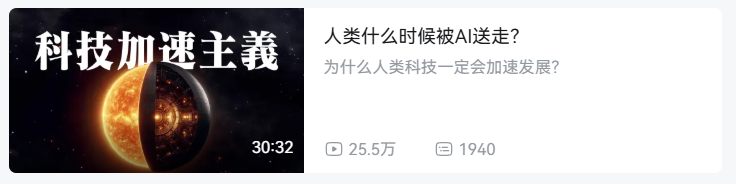 视频介绍了“科技加速主义”这样一个概念,大意是,从有机生命的诞生,到人类文明崛起,这背后一直都是同一个驱动力,就是宇宙熵增这个物理定律,本质上都只是必然发生的自然现象而已。