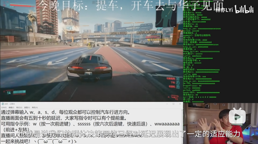 再比如,早在2021年,他就尝试弹幕互动直播了。当时的设计是,观众可以发送弹幕,同时控制同一台车子。