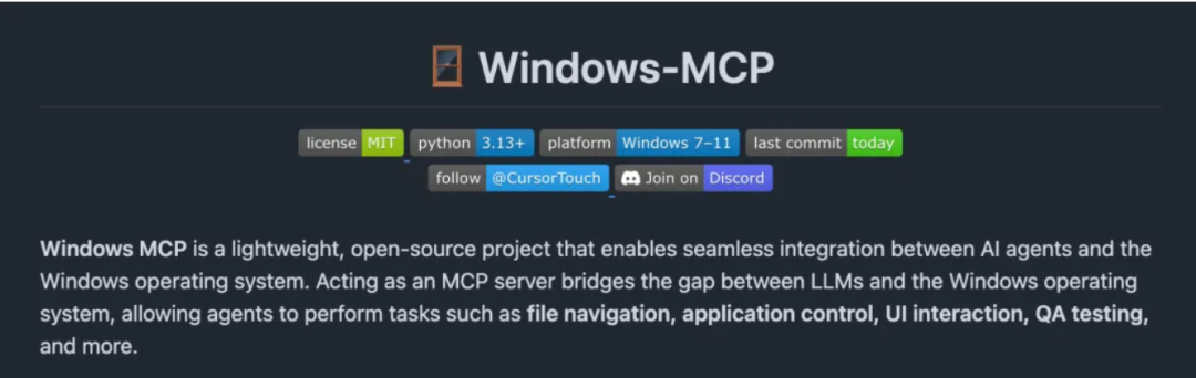 最近在GitHub上发现了一个宝藏项目——Windows MCP,这玩意儿真的把我整不会了。