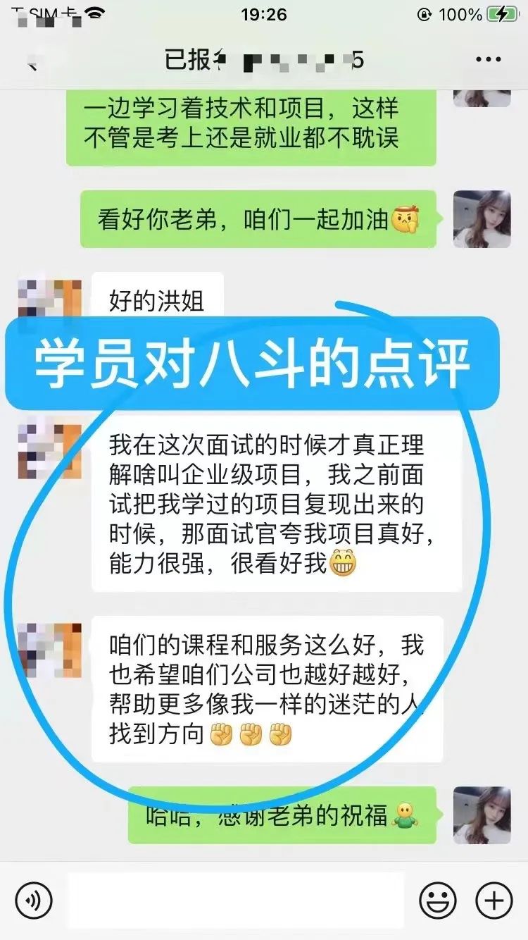 八斗线上学习跟线下对比胜在:师资,都是在职大牛授课,项目真正来源于企业实际应用,才能做到所学皆所用,保障就业。