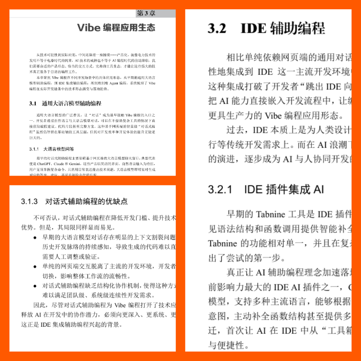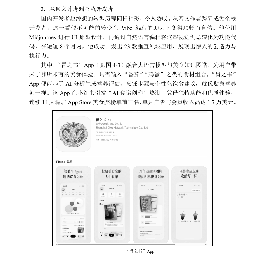 虽然Vibe 编程这一术语直到2025年才被正式提出,但从大语言模型被应用于编程开始,其背后的思维方式就逐步被广泛认可。书中通过几个典型案例,讲述独立开发者如何在这一理念的驱动下,实现从零到一的跃升。