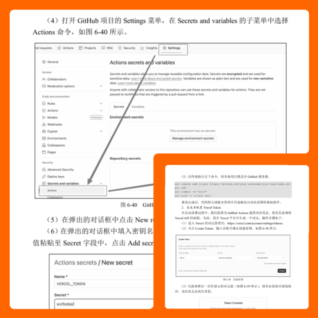 应用部署是项目上线的最后一步。书中借助CI/CD工具实现了自动化部署流程,包括代码提交后的自动构建、测试和部署。这种自动化部署方式不仅提高了发布效率,还降低了人为错误的风险。同时,书中还探讨了如何配置环境变量、管理敏感信息以及进行线上监控和故障恢复等关键问题。