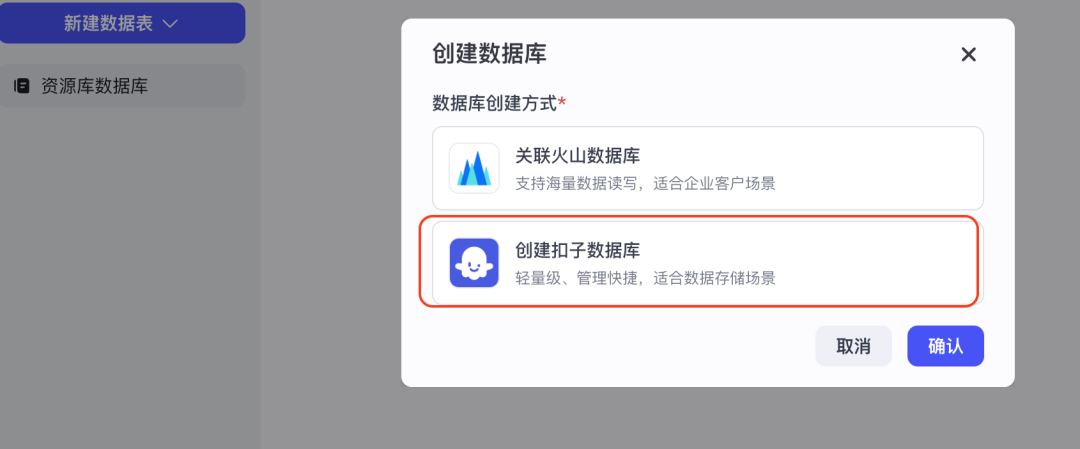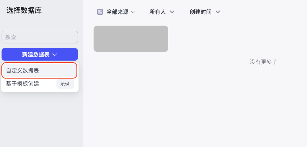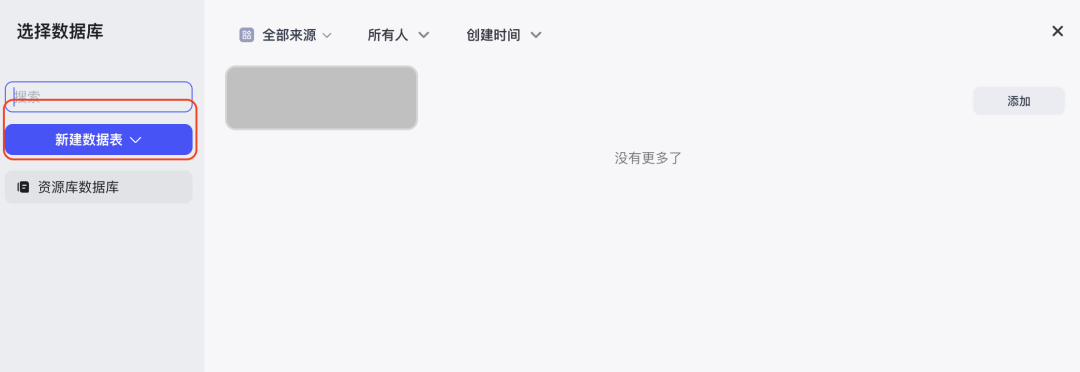 接着我们添加数据库,点击数据表里面的+号 ,然后就出来一个选择数据库的界面,我们点击新建数据表按钮,来建一个数据库。