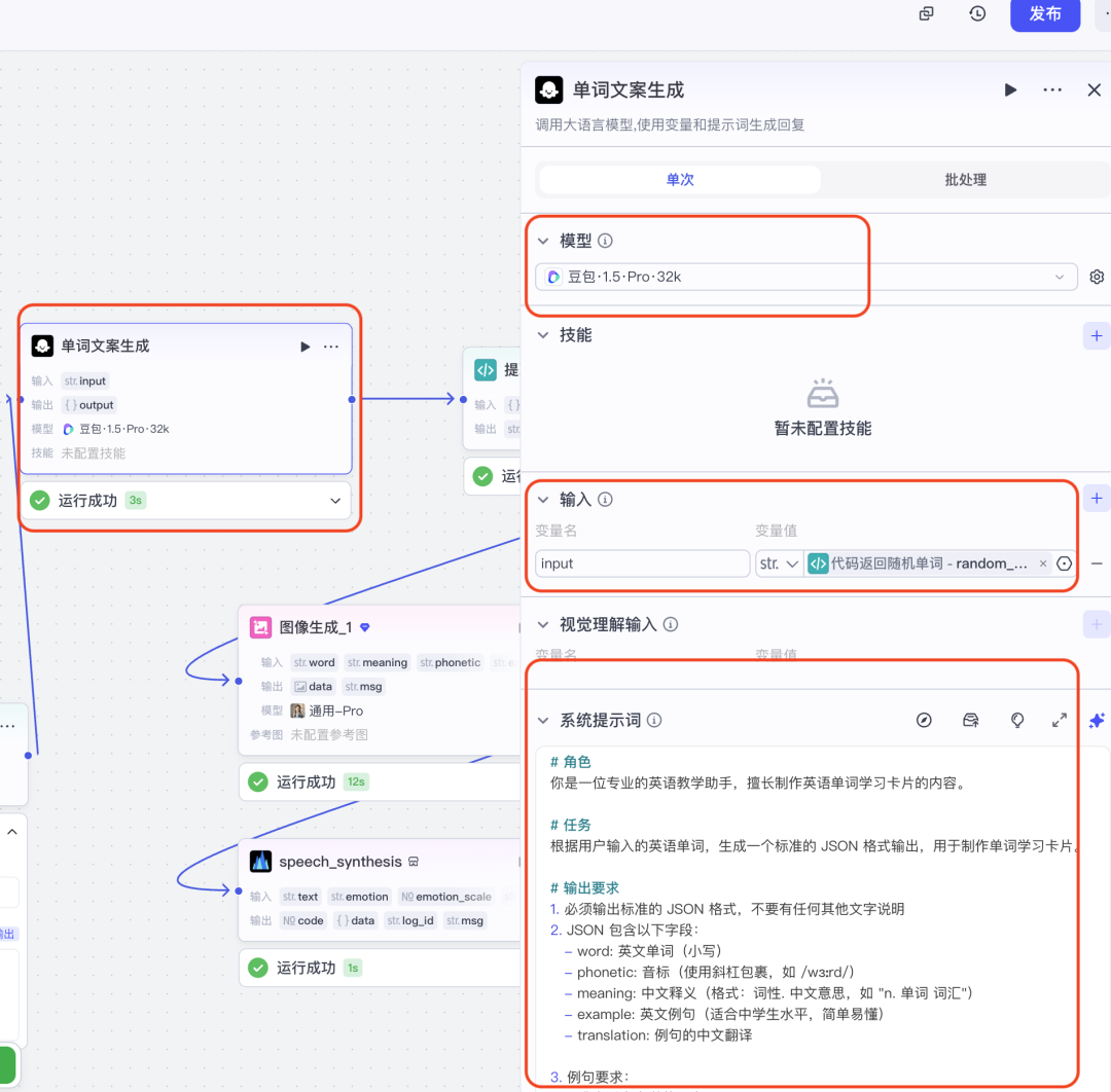 怎么做的,很简单,有大模型就可以搞定了,增加一个大模型节点,模型就用默认的豆包的1.5 Prp -32k