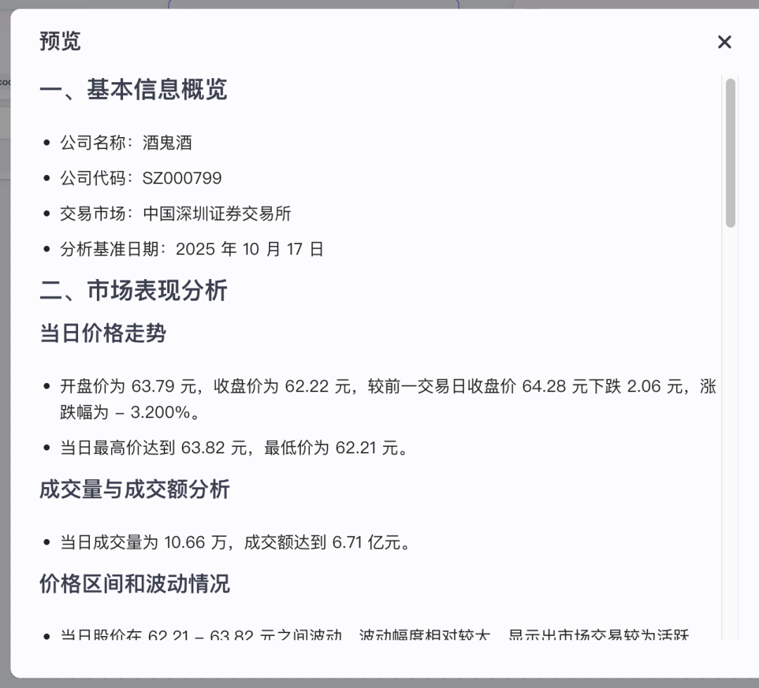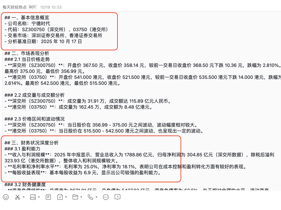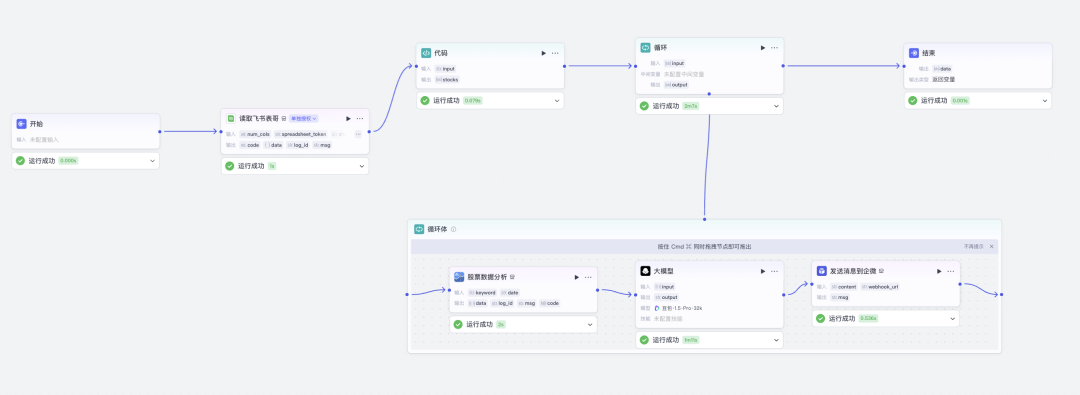我们希望能有一个工作流可以批量的处理,去查询这些个股的信息然后发报告到企业微信群里面: