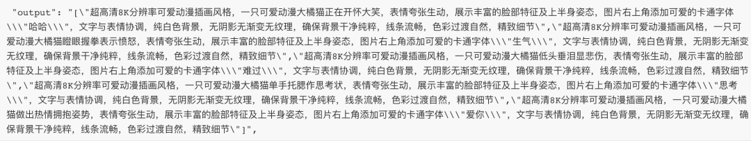 这个提示词具体的内容我就不赘述了,前面很多案例都讲过系统提示词的几个要素,如果不太明白,可以直接喊deepseek帮你完成,这个不是很难的。然后这个大模型节点输出。就是这样的一个数组: