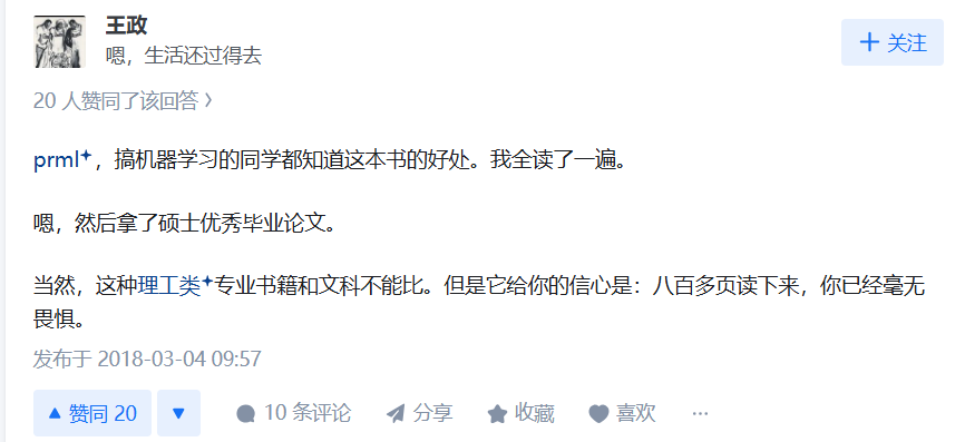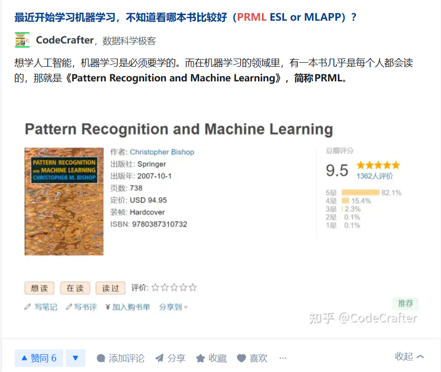 知乎1.8万粉丝、汽车之家后台开发工程师认为:“在机器学习领域,本书几乎是每个人都会读的。”