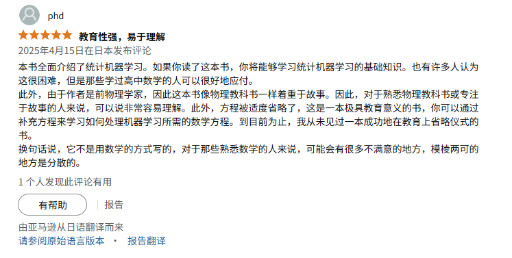 如果你真正想在机器学习领域打下坚实基础,而非浮于表面地调用几个算法库,那么这本书绝对值得你投入时间研读。如今有了中文版,阅读起来更加便利,不妨就从今天开始,与这本经典之作展开一场深度对话吧!