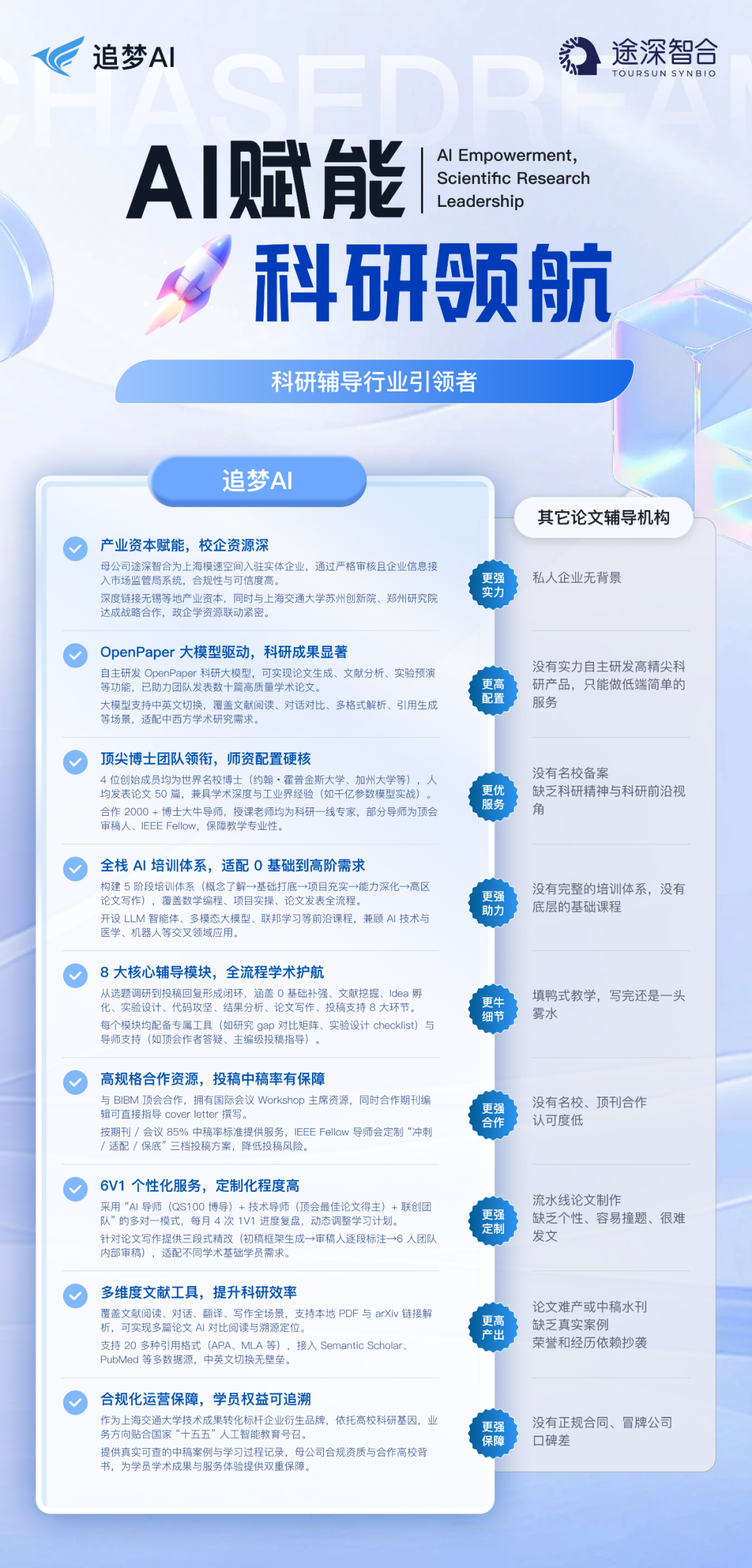 6V1个性化辅导确保各环节专业高效,从选题调研、idea验证、代码实现、实验优化到论文润色、投稿对接等全流程科研支持,强力助推科研突破与快速发表。