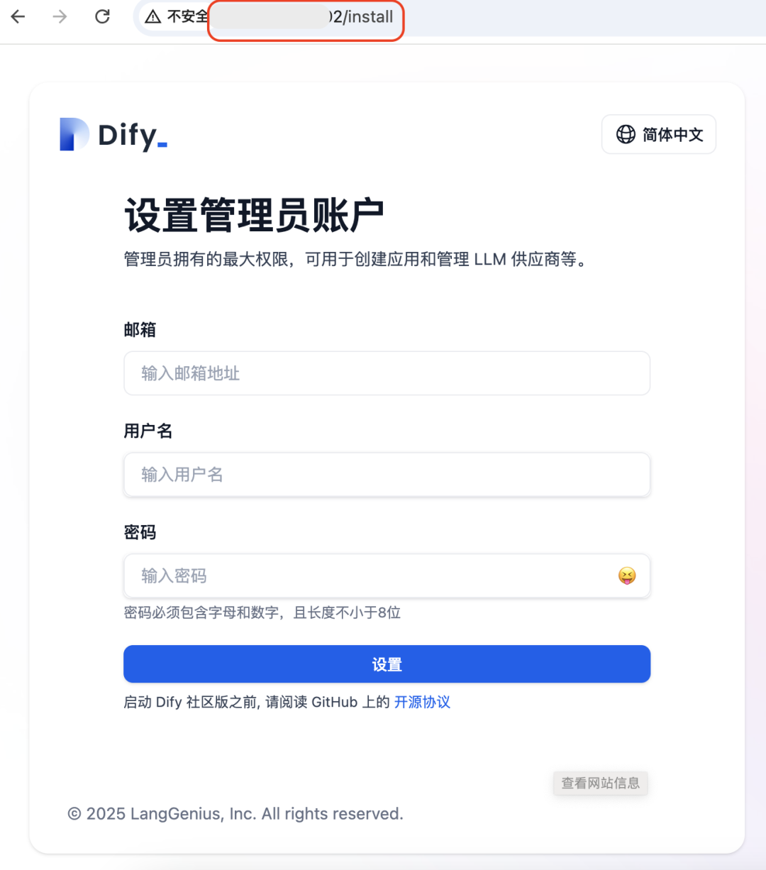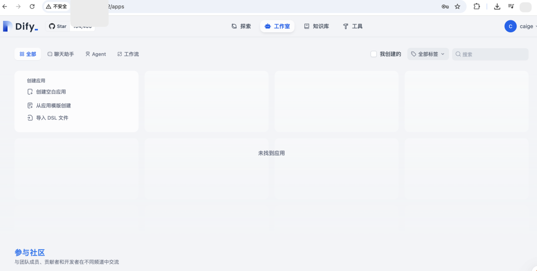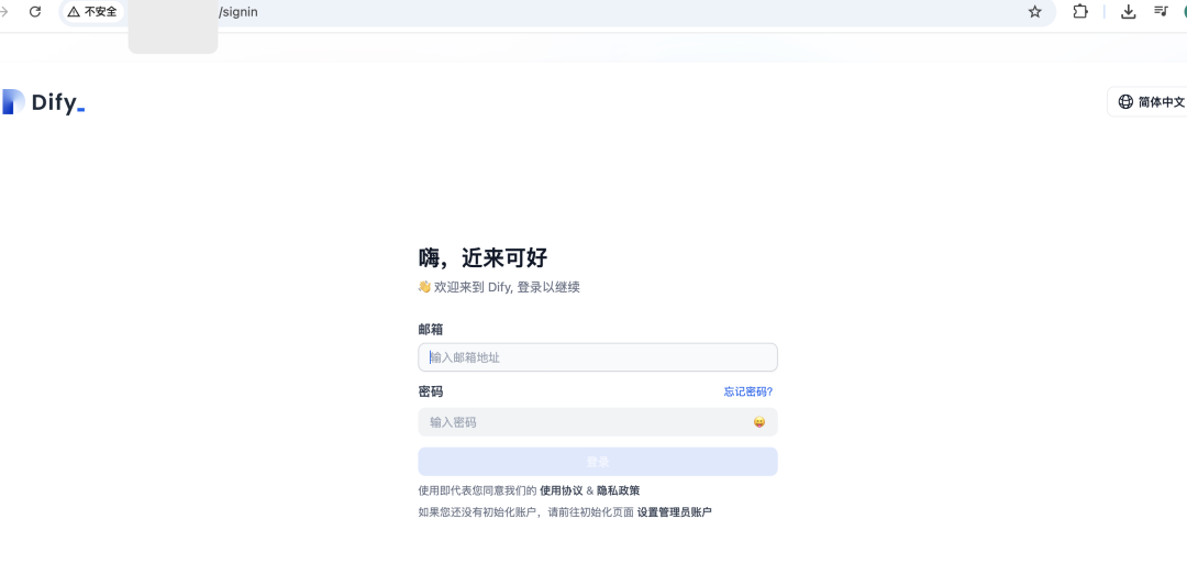 如果看到这个界面,恭喜你,已经成功搭建了自己私有的dify 平台了。