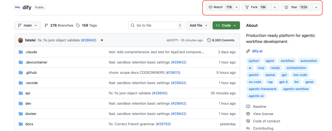 Dify 在 GitHub 上的 Star 数正式突破了 122,000 大关!这个数字不仅代表了它的火爆,更说明它已成为全球开发者构建 AI Agent 和 RAG(检索增强生成)应用的首选工具。