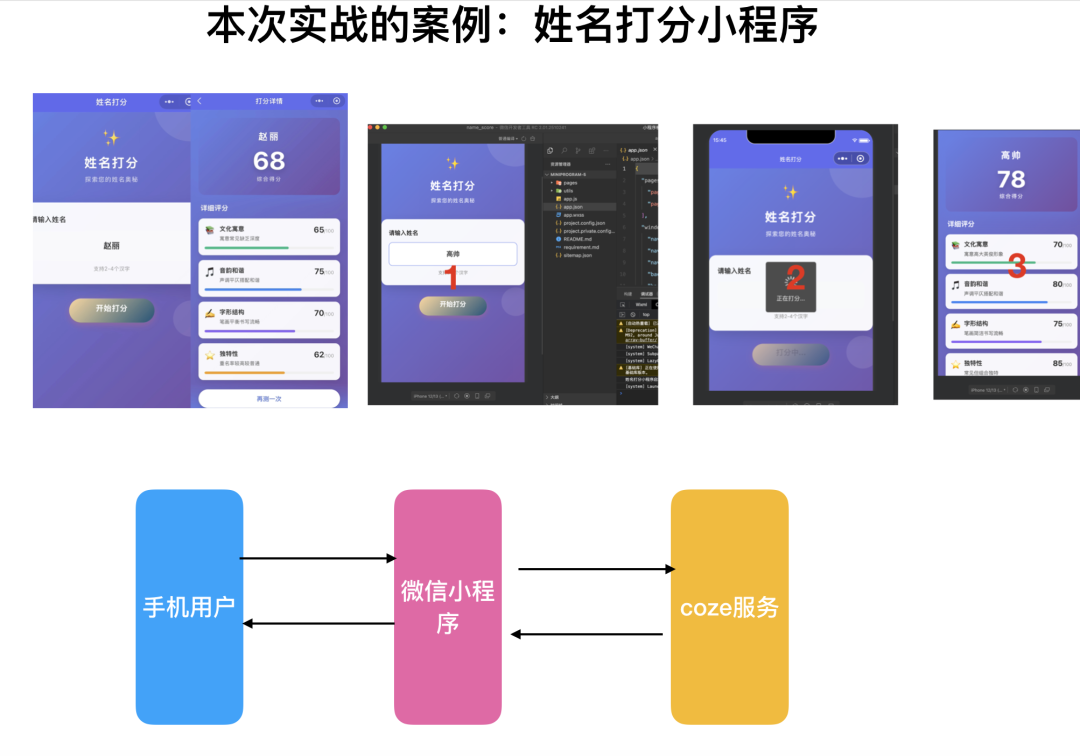这次实战营,我给大家选了一个非常典型、但又极具好玩有趣的场景—姓名打分微信小程序