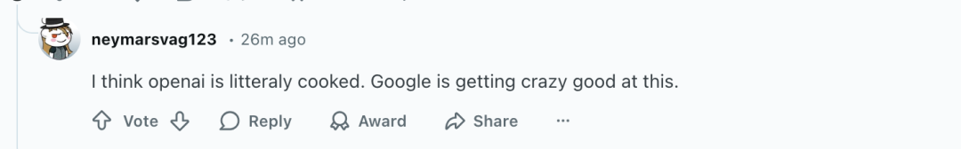 还有用户认为,谷歌最近几次发布已经充分彰显了行业领头羊地位,OpenAI 似乎已经被拍在沙滩上了。