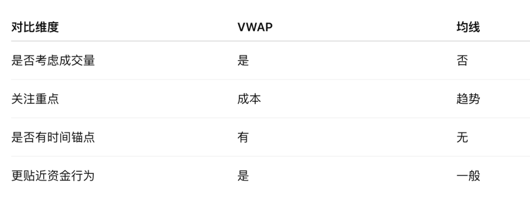 因此,VWAP 天生就带着资金行为的权重信息。很多人第一次接触 VWAP,会把它和均线(MA)混在一起。