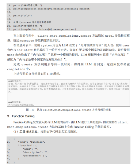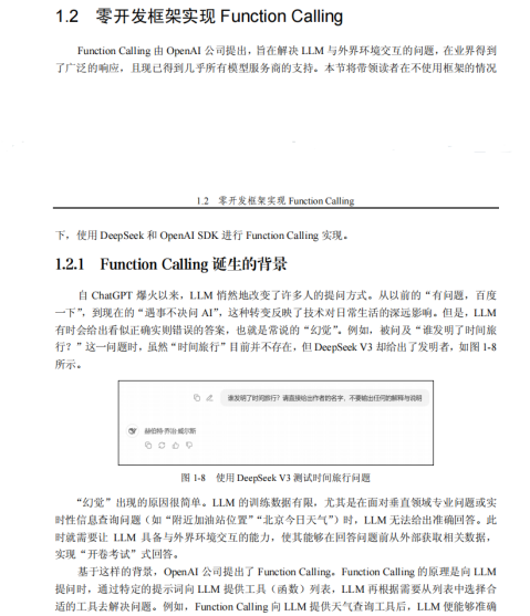 书中详细阐述了如何通过Function Calling机制,使大语言模型(LLM)能够动态地调用外部工具或API,以获取实时信息或执行特定任务。还详解了如何在不使用框架的情况下通过OpenAI SDK实现Function Calling。