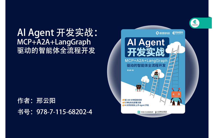 《AI Agent开发实战:MCP+A2A+LangGraph驱动的智能体全流程开发》一书以系统化视角解析AI Agent的开发流程,全面覆盖从基础理论到多智能体协同等高级主题,助你构建完整的知识框架和形成科学的思维模式。