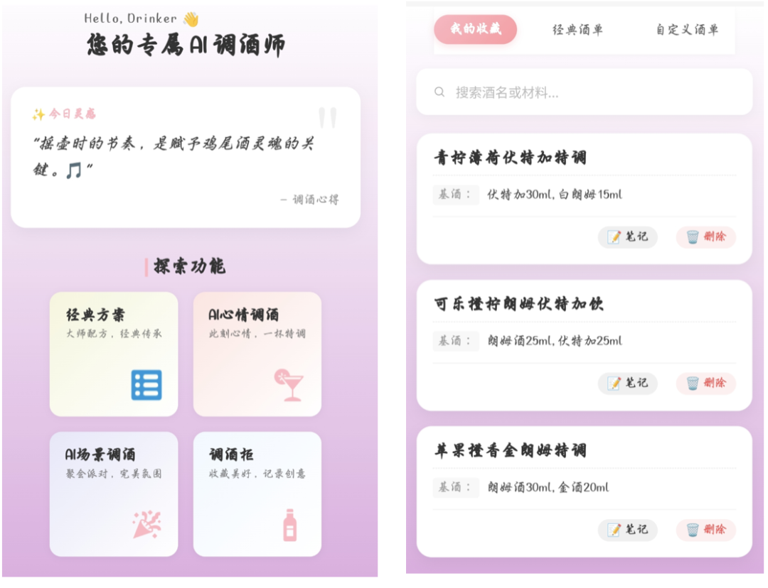 输入你现在的情绪、场景、口味偏好,AI 给你推荐一杯酒,还配文案。