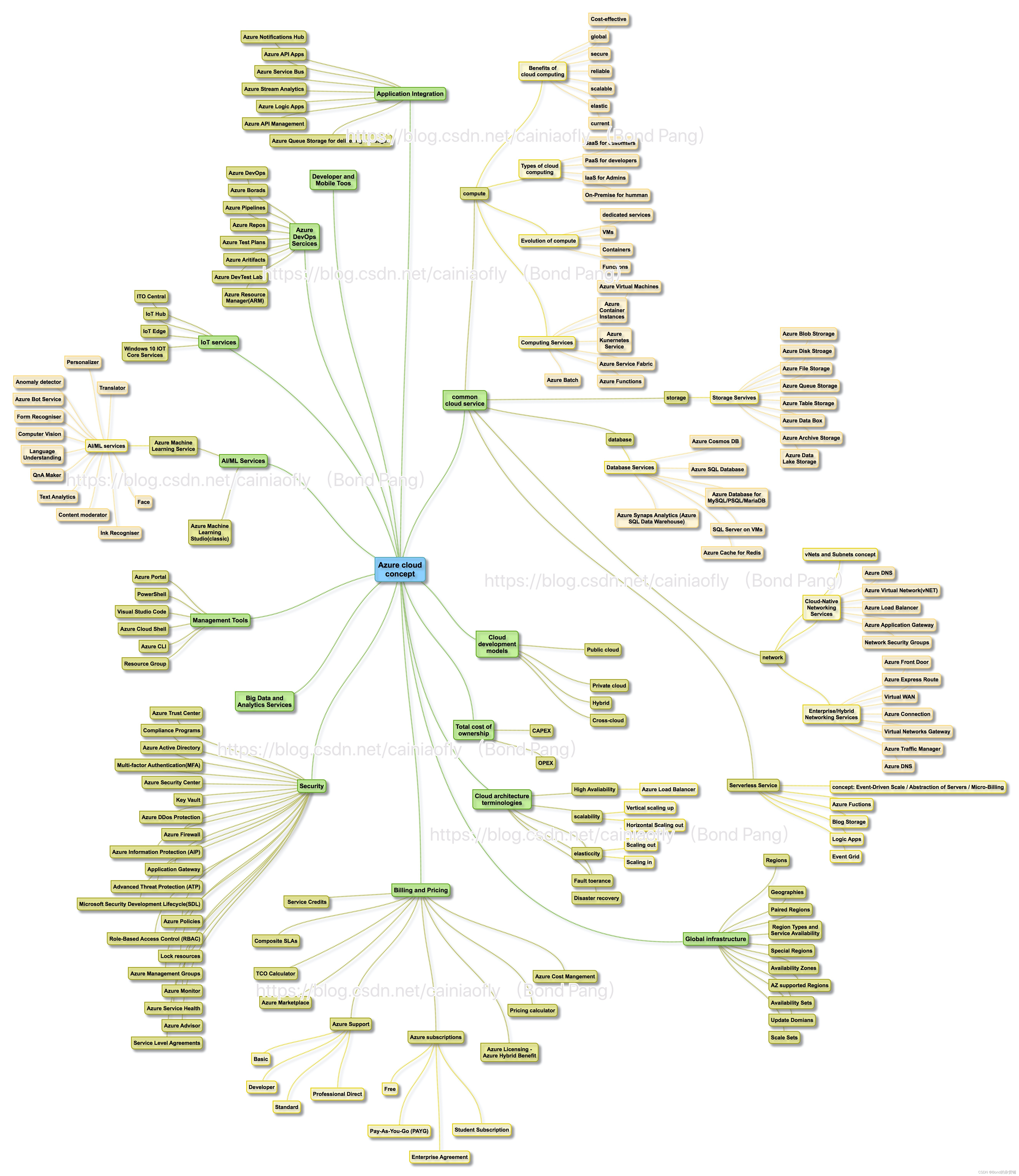 This diagram describes variety of core services/modules/components of Microsoft Azure in ONE PICTURE. Hope it would be helpful for you to build a complete understanding especially when you are trying to either figure out a outline to go through all the concepts or dig into one area you're interested in.