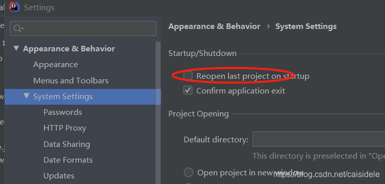 第一步:idea系统设置里面关掉《启动时打开上次的项目》
